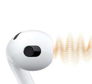 An inward-facing microphone hears sound as you do. AirPods Pro then fine-tune the audio by adjusting the mid and low frequencies.